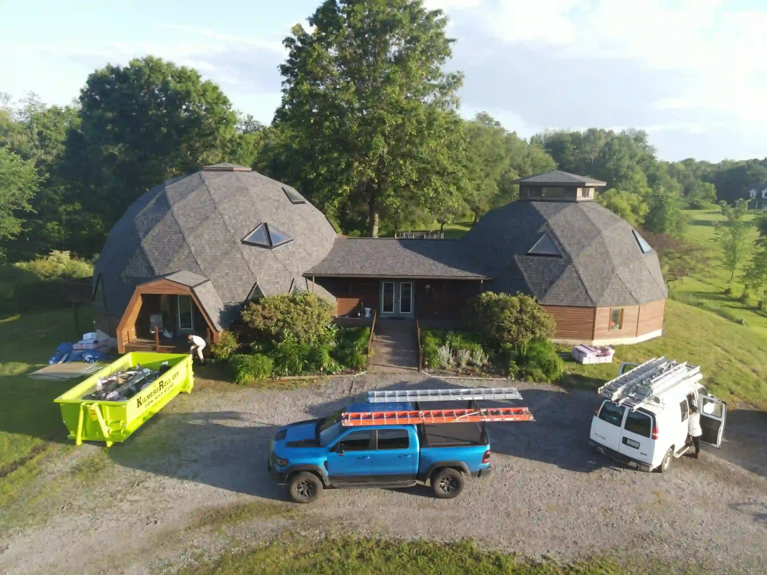 This roofing project involved the complete re-roofing of a dual geodesic dome residence—a rare and architecturally complex structure that required a high degree of skill, planning, and attention to detail. The installation took one full week to complete due to the technical challenges presented by the curved surfaces, non-linear geometry, and steep angles.