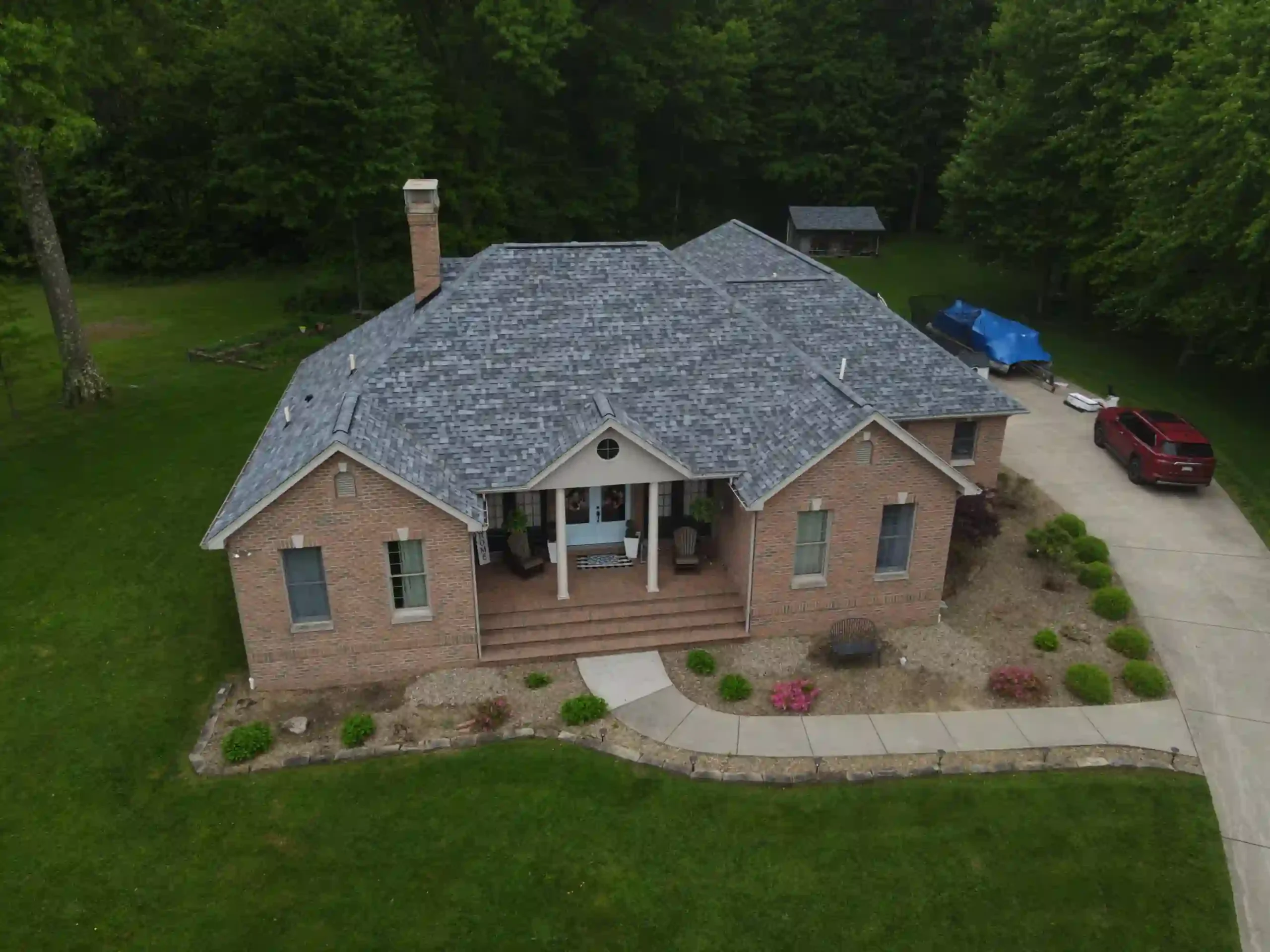 We used the HOVER mobile app to accurately measure and model the roof prior to installation. This technology generated a 3D rendering of the home, allowing us to calculate precise quantities of shingles, ridge caps, underlayment, flashing, and other materials. By using HOVER, we reduced waste and improved project efficiency—ensuring the homeowner received exactly what was needed without unnecessary overages.