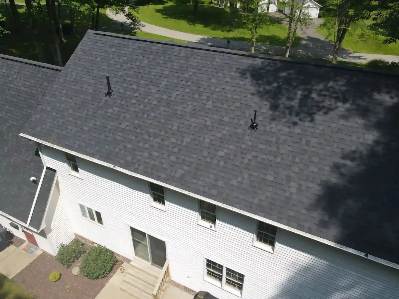 The homeowner selected Owens Corning Duration shingles in Onyx Black, a bold, high-performance shingle that adds contrast and style to the home while offering advanced protection against wind and weather. To improve attic ventilation and extend the life of the new roof, we installed Dura Ridge ridge vents—a smart addition that helps regulate heat and moisture inside the structure. These upgrades were designed to meet the highest industry standards and qualify for full warranty coverage, including a limited lifetime material warranty and a 5-year labor warranty.