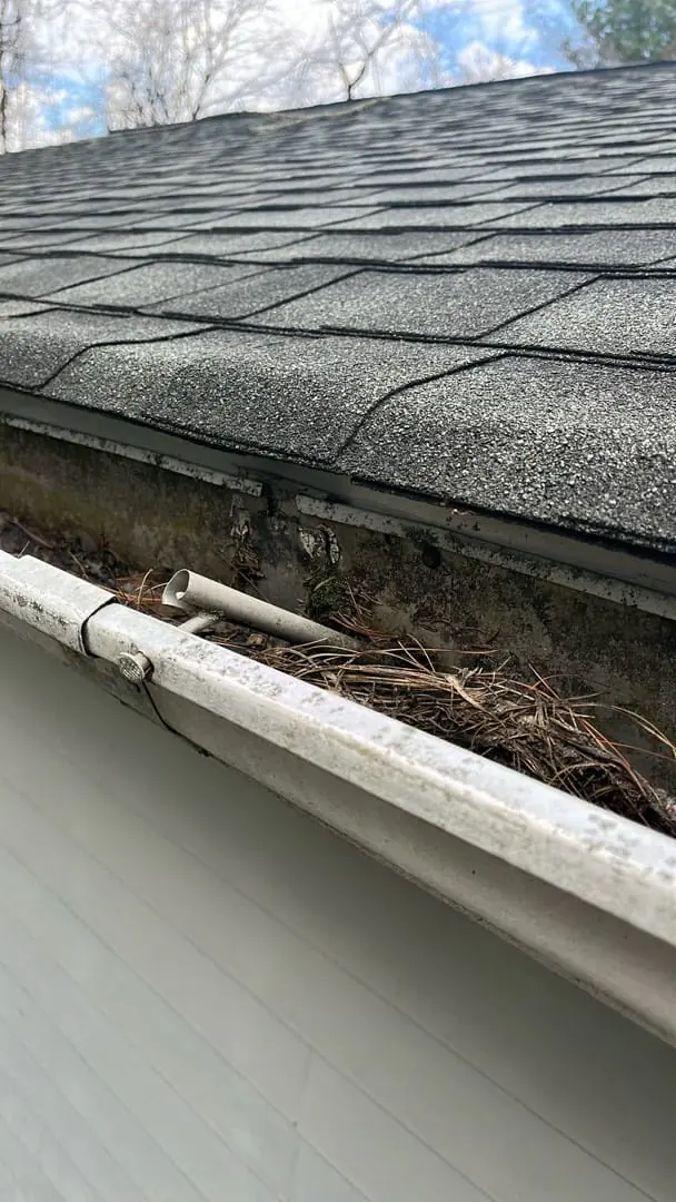 Along with the roof upgrade, the home received a brand-new gutter system. 5-inch seamless white gutters were installed to effectively guide water away from the home’s foundation and protect the exterior from runoff damage. The seamless design ensures fewer weak points and a clean, polished finish.