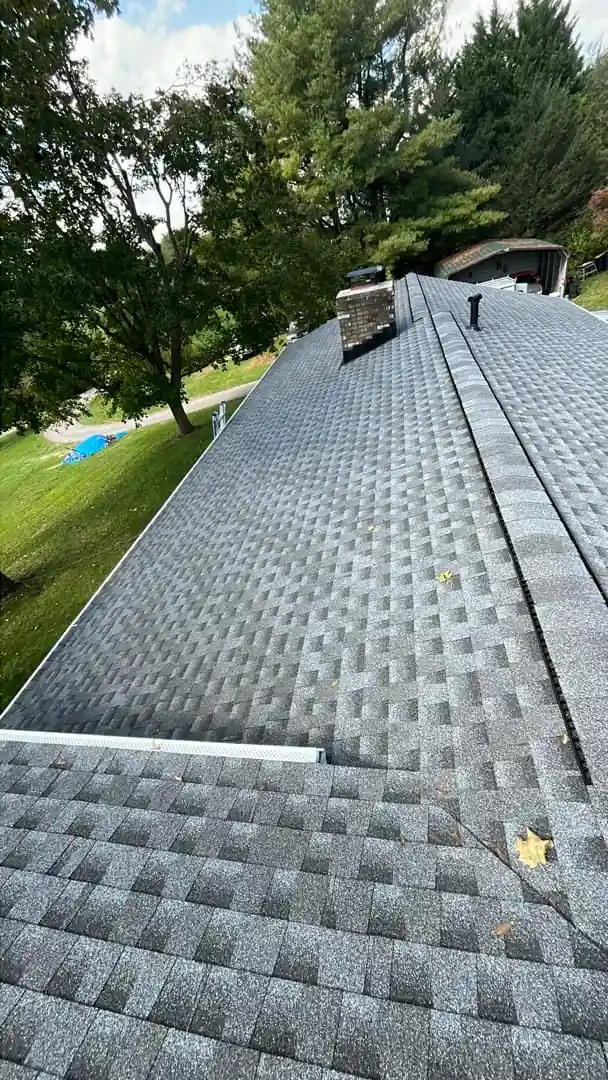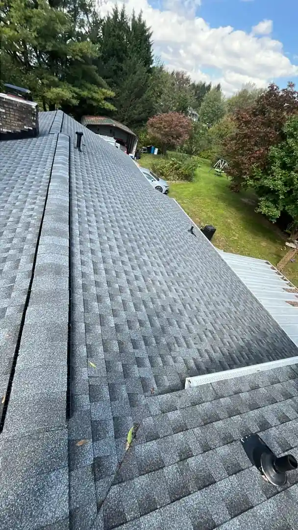 To ensure proper ventilation and prolong the roof’s lifespan, Snow Country ridge vents were installed along the ridgelines. The system also included a white drip edge, ice and water shield, underlayment, pipe collars, and all necessary flashing—installed in accordance with GAF’s specifications to qualify for a 50-year material warranty and a 5-year labor warranty on workmanship.