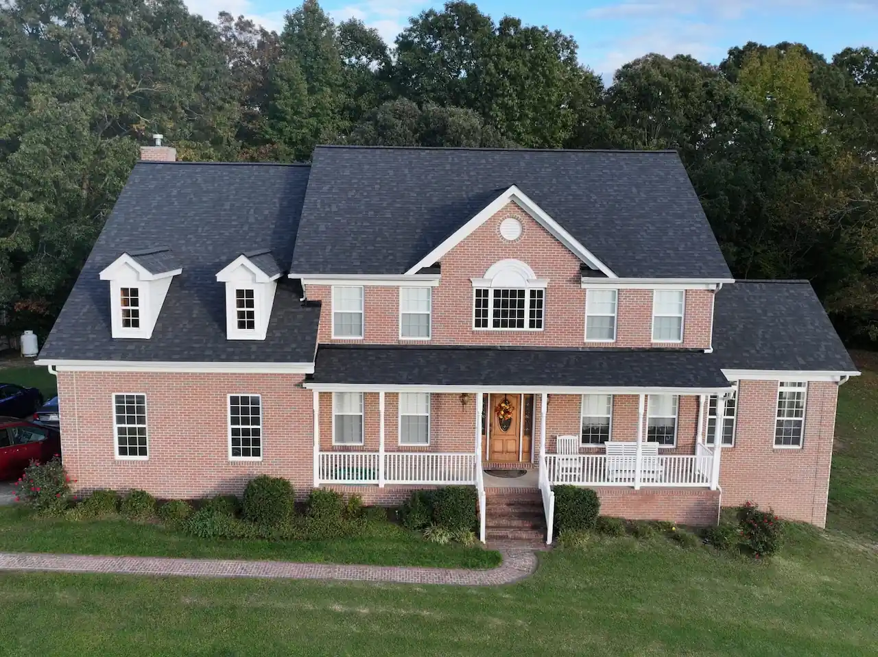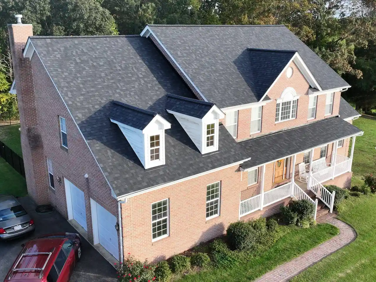 This home in La Plata, MD received a complete roof replacement using Owens Corning Duration shingles in Onyx Black, selected for their strength and long-lasting finish. The project began with a full tear-off of the old roof, followed by inspection and repair of the decking as needed. The new system included white drip edge, Dura Ridge vents, and a full installation according to manufacturer specifications to support the lifetime material warranty.