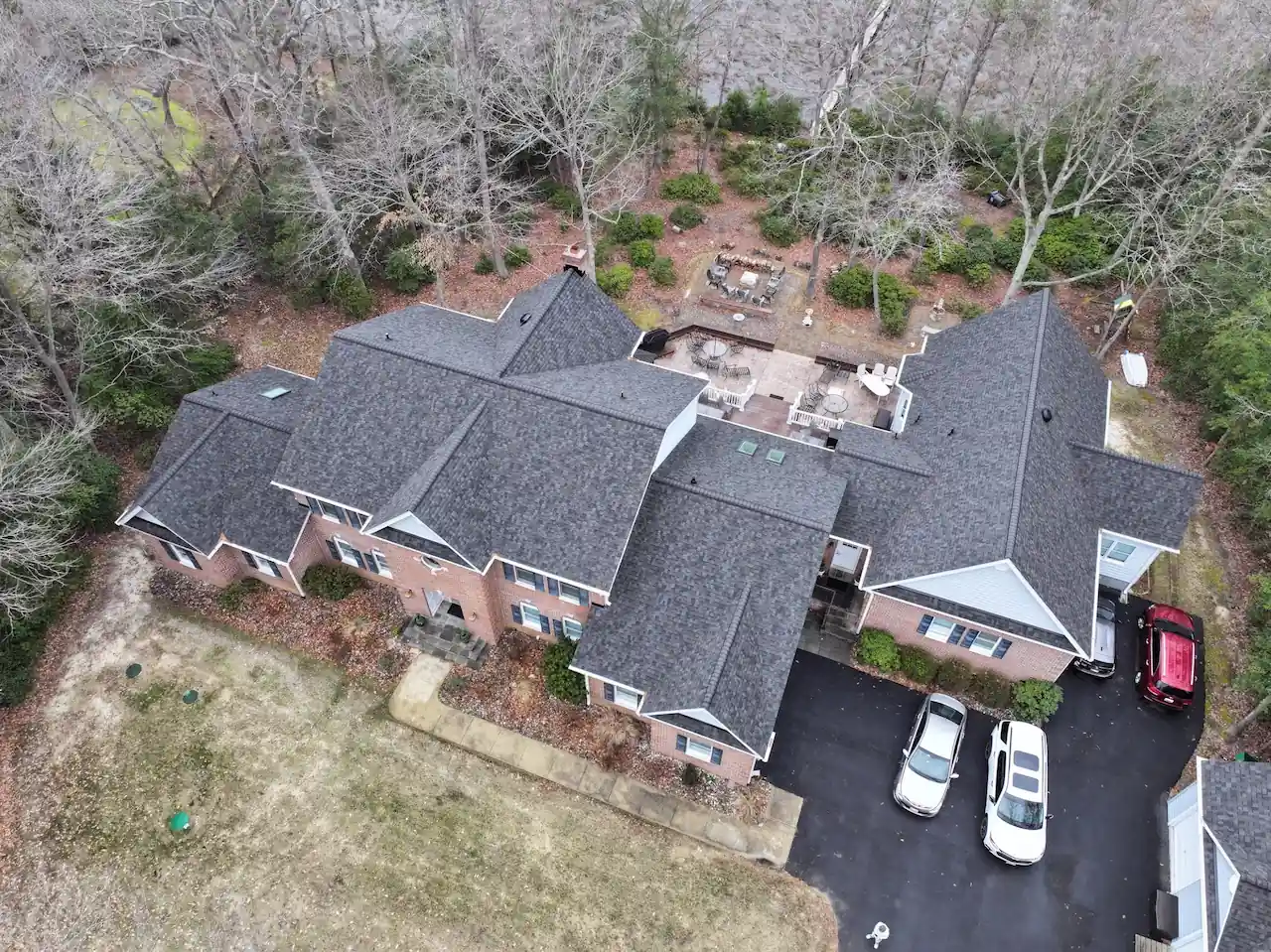A complete exterior remodel was completed at this home in Saint Leonard, MD, focused on roofing, siding, and gutter system upgrades. The existing roofing system had aged significantly, and after a detailed assessment, the homeowner chose Owens Corning Duration shingles in Williamsburg Gray, installed on both the house and detached garage. The new roof included shingle-over ridge vents, a white drip edge, and a full clean-up and decking inspection.